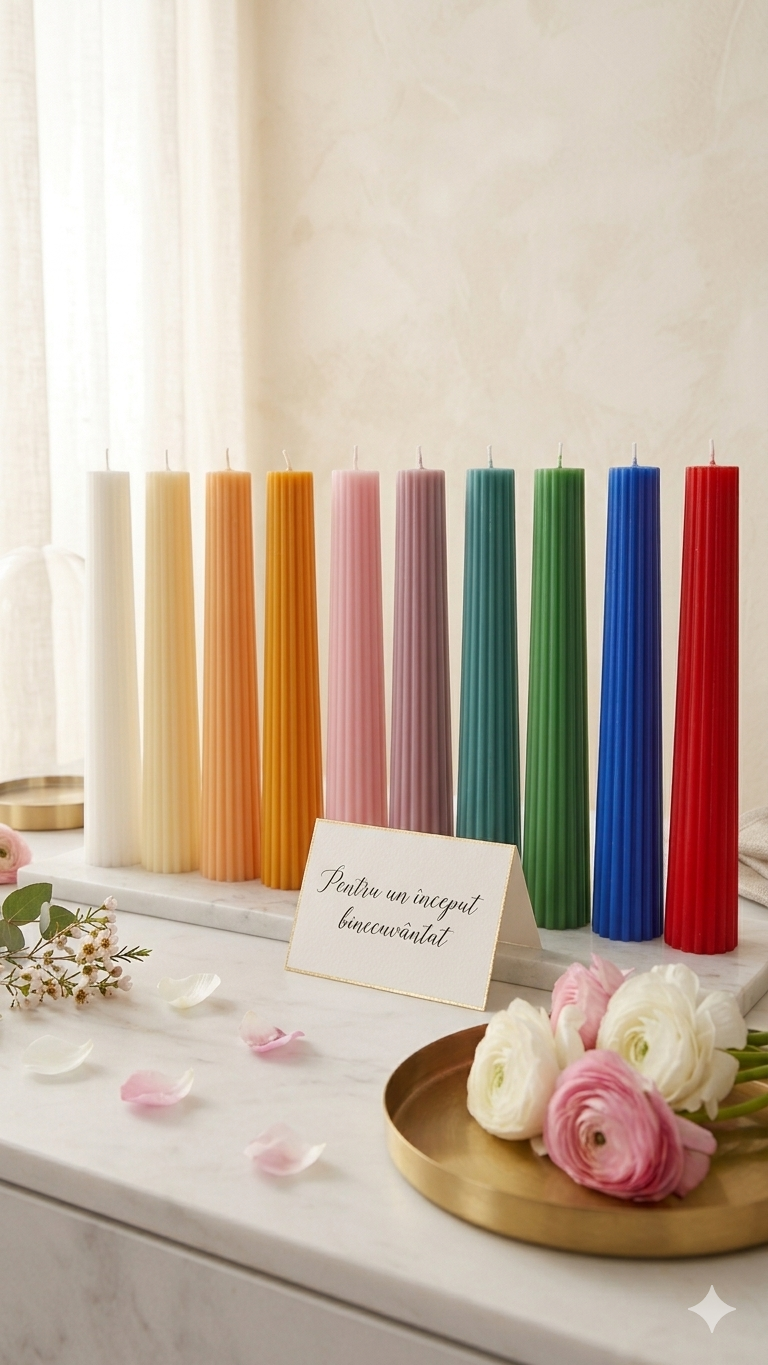 Fie că ești în căutarea unor lumanari botez în nuanțe delicate de roz, bleu sau ivory, fie că dorești lumanari nunta și lumanari cununie în culori vibrante precum albastru royal, turcoaz sau roșu, selecția noastră acoperă orice preferință: