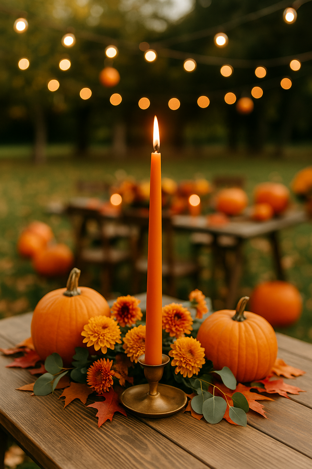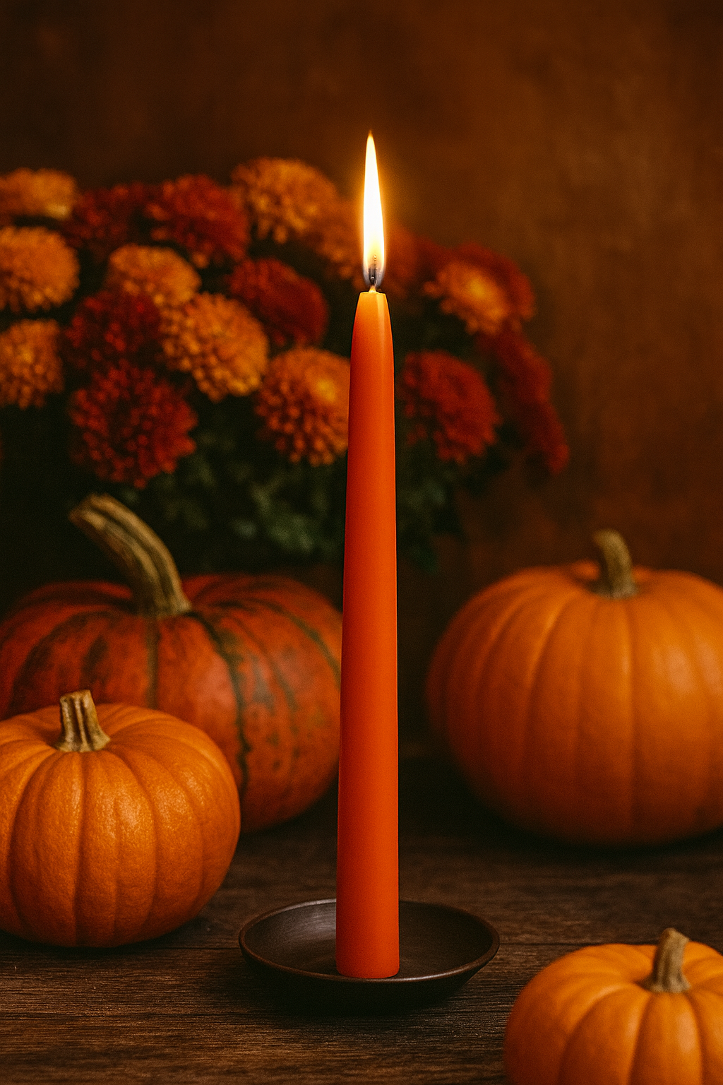Cu o nuanta calda si placuta, este ideala pentru decoruri de toamna, mese festive sau aranjamente tematice. Este realizata din ceara de calitate superioara, arde uniform si ofera o lumina blanda si constanta.
