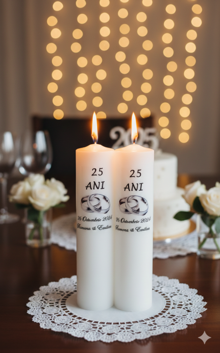 Marcarea Timpului: Data celebrării celor 25 de ani de căsătorie, transformând lumânarea într-o piesă de colecție și o amintire vie.